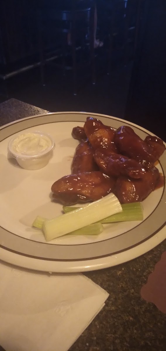 Casual Pub bar/restaurant with multiple TVs for watching sports. Menu consist of Tavern / pubs Foods: Burgers, wings, salads, wraps. Small assortment of entrees for those who want an actual dinner. I went with a rodeo burger that consisted of a burger with pickles onions mushrooms barbecue sauce and cheese. Burgers come with one of three types of fries regular, waffle or sweet potato. I chose sweet potatoe which came with the sweet sauce normally served with these fries. Also split a Caesar salad which was fresh and delicious with plenty of dressing. My other half got the so-called giant or jumbo wings which were decent size, pretty plump and tasty. Were covered with a really good sauce which basically tasted like sweet Baby Ray's. The only thing I had a complaint about was one of those so-called jumbo Wings was a very small piece of cauliflower that was covered with sauce. when it was mentioned to the waitress, instead of going back and getting another piece she just said ,"oh my,"and walked away. So7 not 8 pieces. I blame the fact that the help was very, very young and basically inexperienced . They were polite. Aside from that, the bathrooms were very clean ...you know that's my pet peeve. Oh yes and most importantly for the guys, very good beer fill. Plus it was nice and cold.
