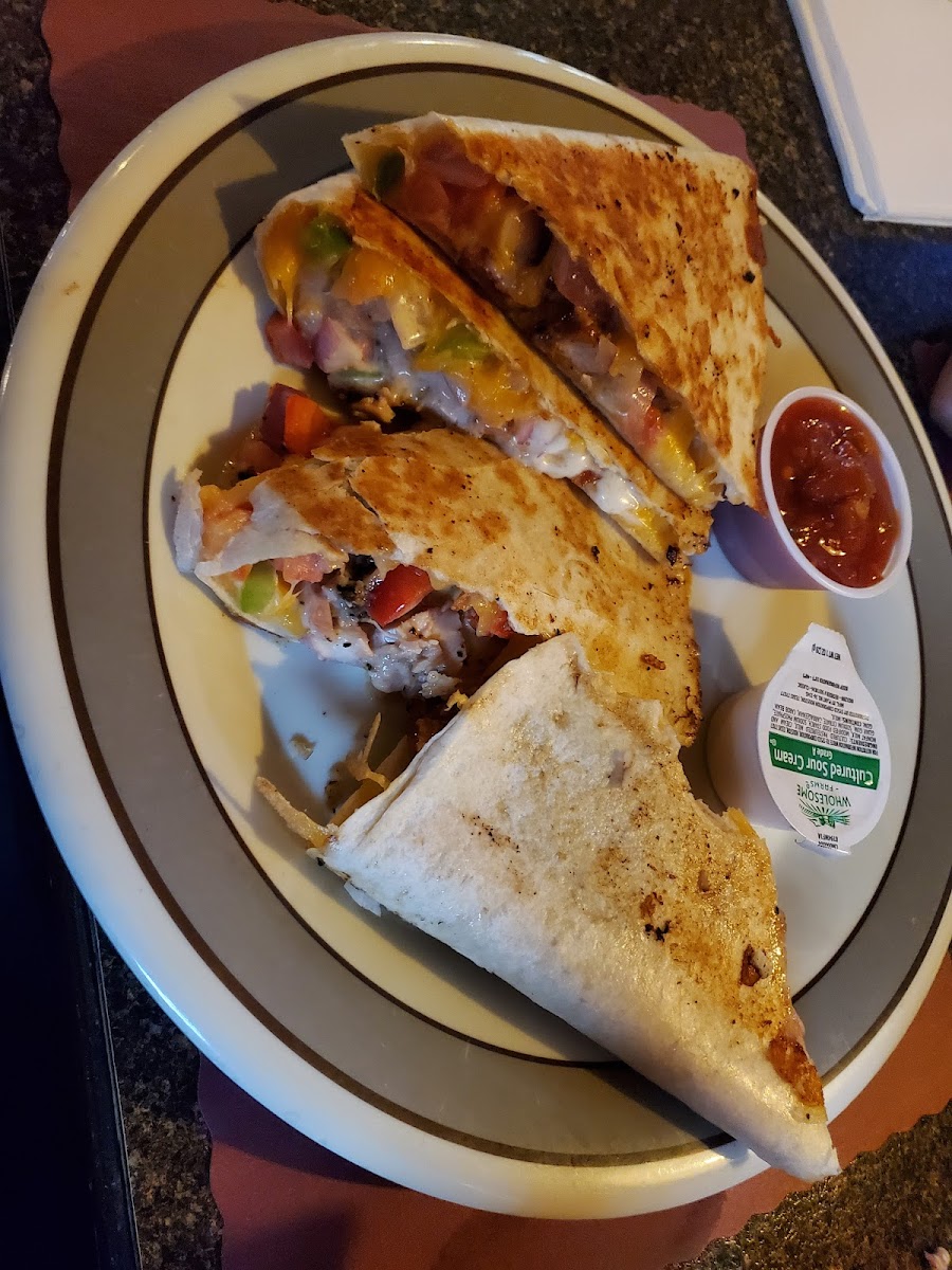 Delicious food! Great portions for the price! So worth the wait! I got a Margarita with the Chicken Bacon Ranch Quesadilla.